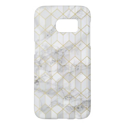 White Marble with Gold Cube Pattern Samsung Galaxy S7 Case
