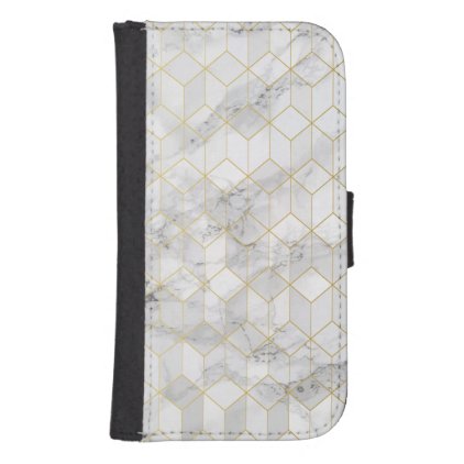 #Samsung #Cover- #White Marble with Gold Cube Pattern Phone Wallet