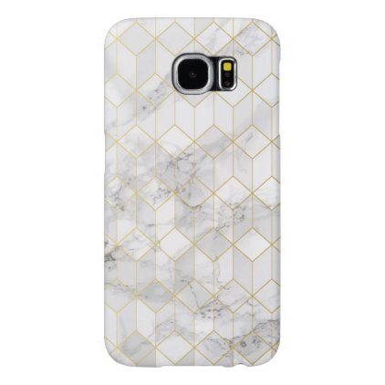 White Marble with Gold Cube Pattern Samsung Galaxy S6 Case