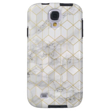White Marble with Gold Cube Pattern Galaxy S4 Case