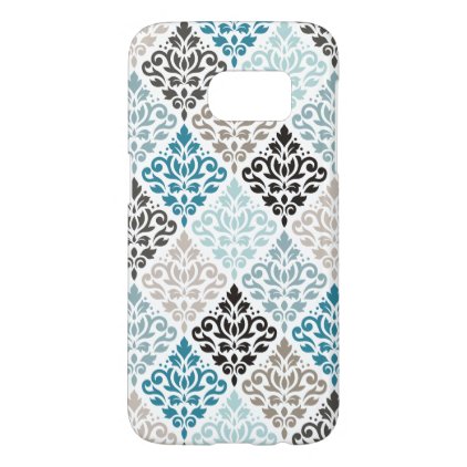 Scroll Damask Pattern Teals Browns White Samsung Galaxy S7 Case